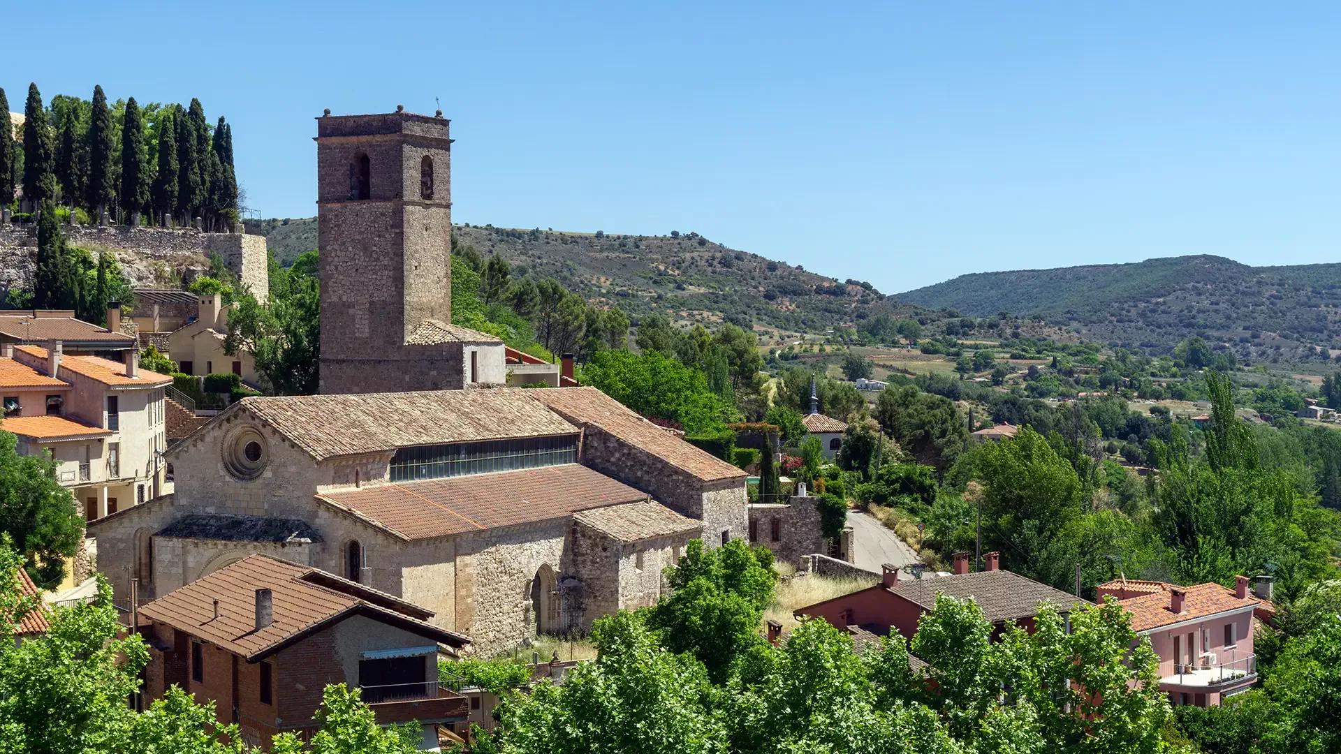 Torre campanario: Adosada al presbiterio, la torre es de planta rectangular; su construcción se desarrolló en dos fases —la medieval original y un recrecimiento en el siglo XVII—. Conserva troneras y alojaba campanas, cuya sonoridad proyectaba hacia toda la villa.